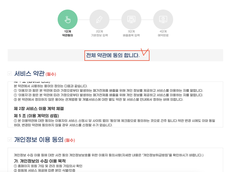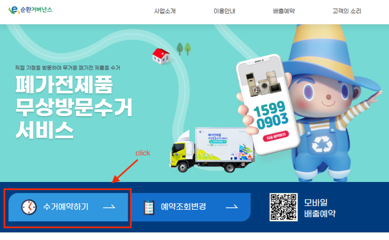 2. '수거예약하기' 클릭