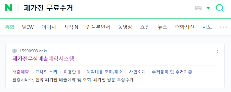 1. '폐가전 무료수거' 검색후 접속하기 (15990903.or.kr)